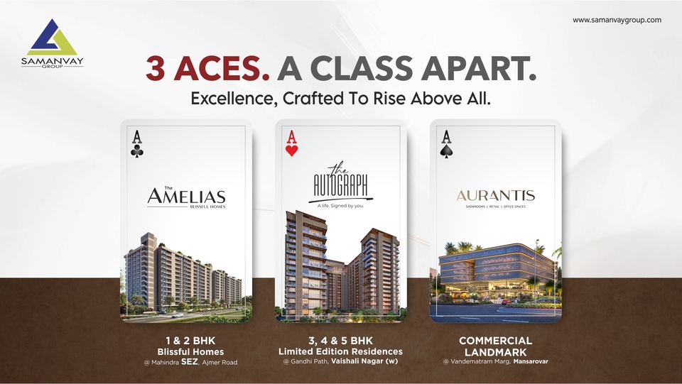 As Jaipur continues its journey toward becoming a modern urban destination, the 3 A’s by Samanvay Group reflect a holistic approach to development — offering homes for every stage of life and spaces for every stage of business growth. Whether one seeks a blissful home, an ultra-luxury residence, or a premium commercial address, Samanvay Group delivers spaces designed for the future while rooted in trust and excellence.
